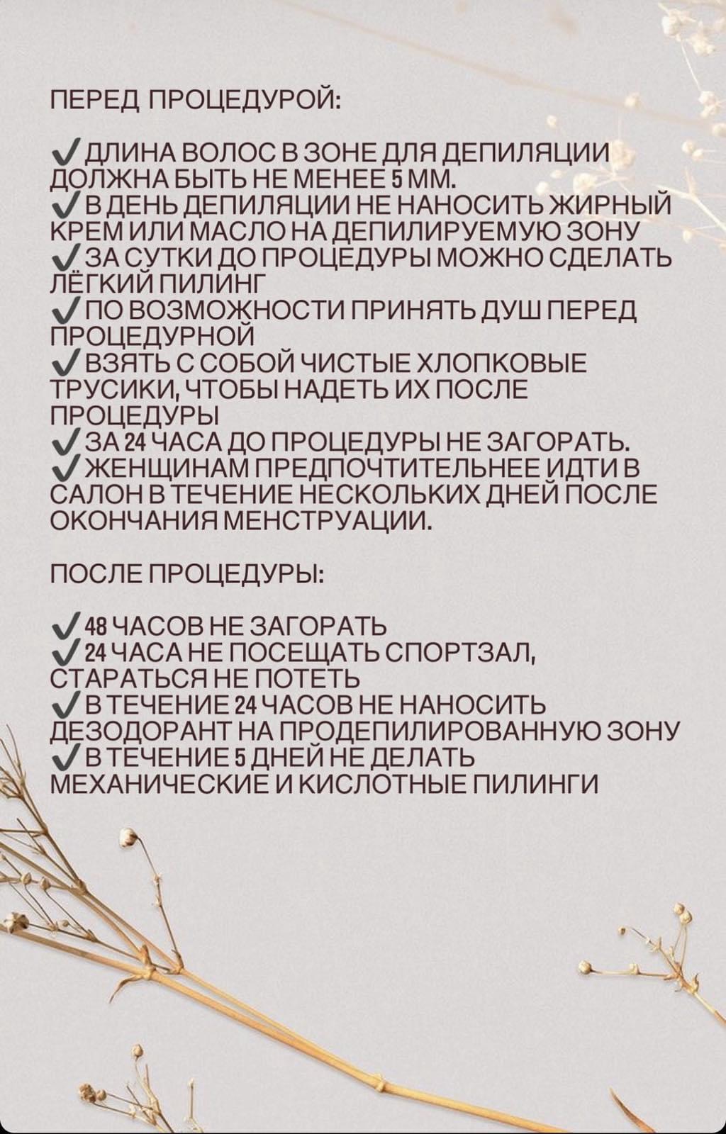 | #2 | Ноги полностью + Подмышки + Глубокое бикини | 85 р. |